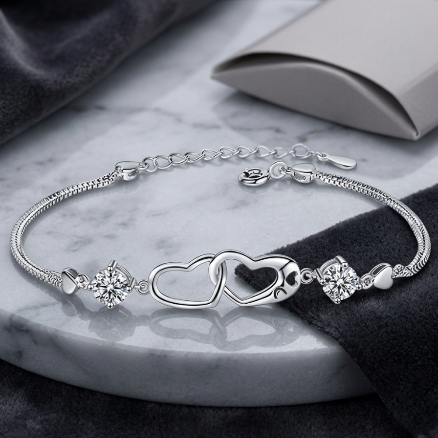Elegant Women’S Bracelet with Heart-Shaped Synthetic Zirconia – Copper Chain, Ideal Gift for Friends, Perfect for Daily Wear, Parties, and Music Festivals, Party Accessory|Elegant Bracelet|Durable Bracelet