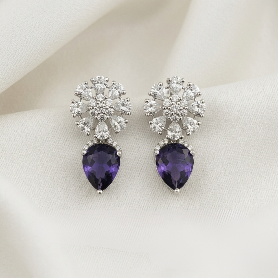 Velvet Petals offers an exclusive collection of finest quality crafted Fashion Jewellery in various colors. We make sure that our collection of Cz Classic Earring With Rhodium Plating are beautiful, elegent & will surely galvanize you, because our products are unique, comfortable, fashion forward & very popular for the rich look. Base Metal of our product is Alloy, i.e Mixing of Copper & Brass. We pack all the products using quality packaging material to ensure safe and secure transportation.
