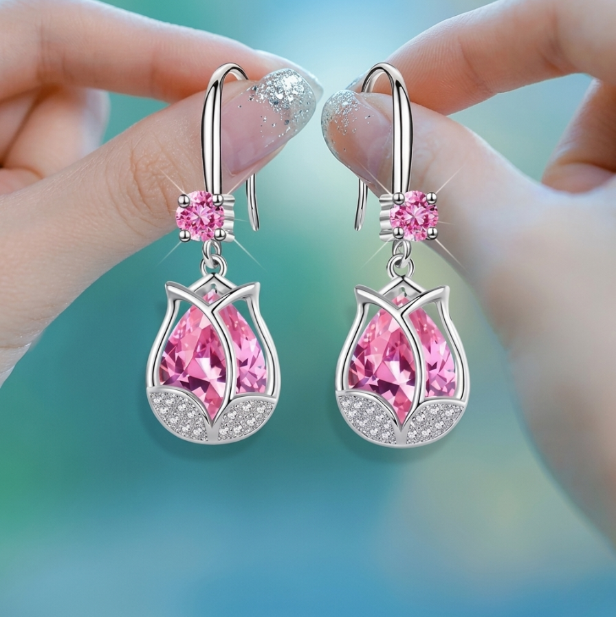 Tulip Shape Drop Earrings Shiny Inlaid Elegant Vintage Style Jewelry – Pink